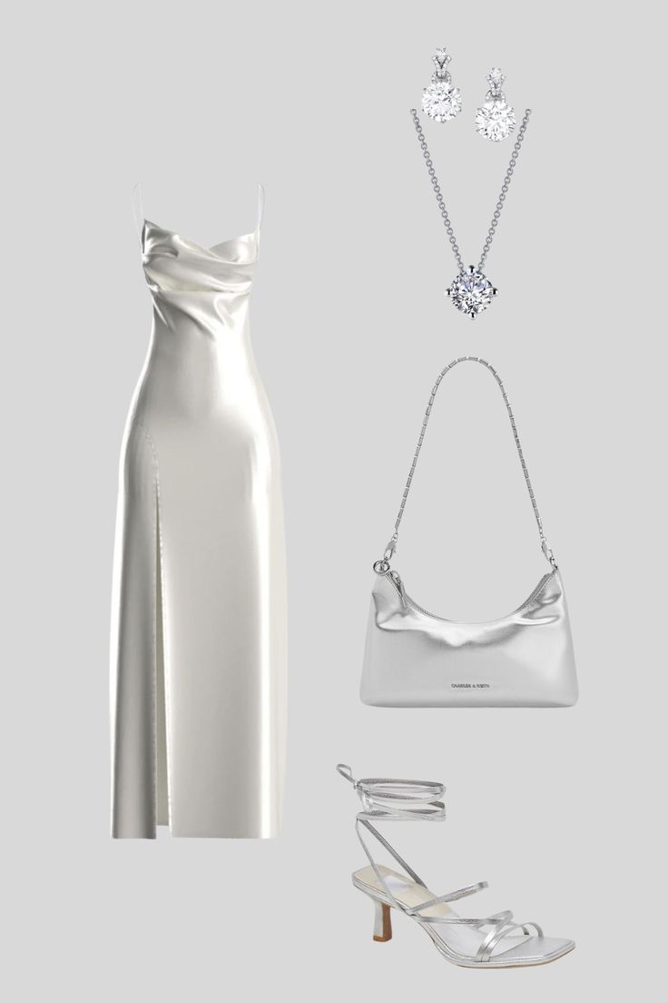 Elegant White Silk Dress Outfit featuring smooth luxurious fabric, soft sheen, flattering drape, minimal accessories, refined silhouette, timeless charm, modern elegance, versatile styling, graceful movement, perfect for formal dinners, summer evenings, special occasions, and upscale events