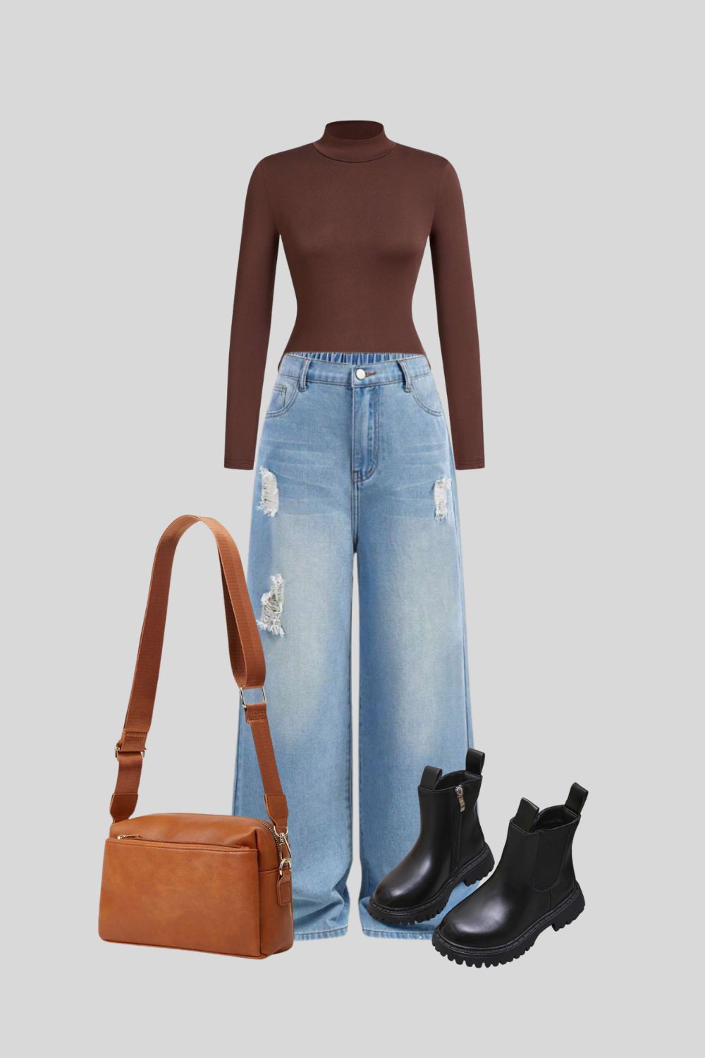 Be the first to review “Trendy Fall Outfit with Brown Top & Wide-Leg Jeans | Casual Street Style” Cancel reply